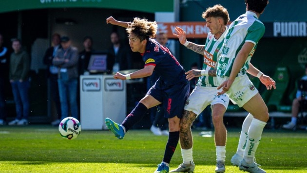 Nach einem schwachen Schuss Yeos, der für Hedl kein Problem darstellte, (63.) fiel das Geschehen aber für einige Minuten wieder in den Lauer-Modus zurück. Hoff Thorup reagierte mit der Einwechslung von Yusuf Demir und Kara (69.), Letzterer zielte nach Hereingabe von Ersterem aus Kurzdistanz daneben (72.). Grün-Weiß drückte der Rapid-Viertelstunde dann seinen Stempel auf und belohnte sich spät. Wieder war es eine Co-Produktion Demir-Kara. Der 1,92-m-Mann schoss im Zentrum ins lange Eck ein.